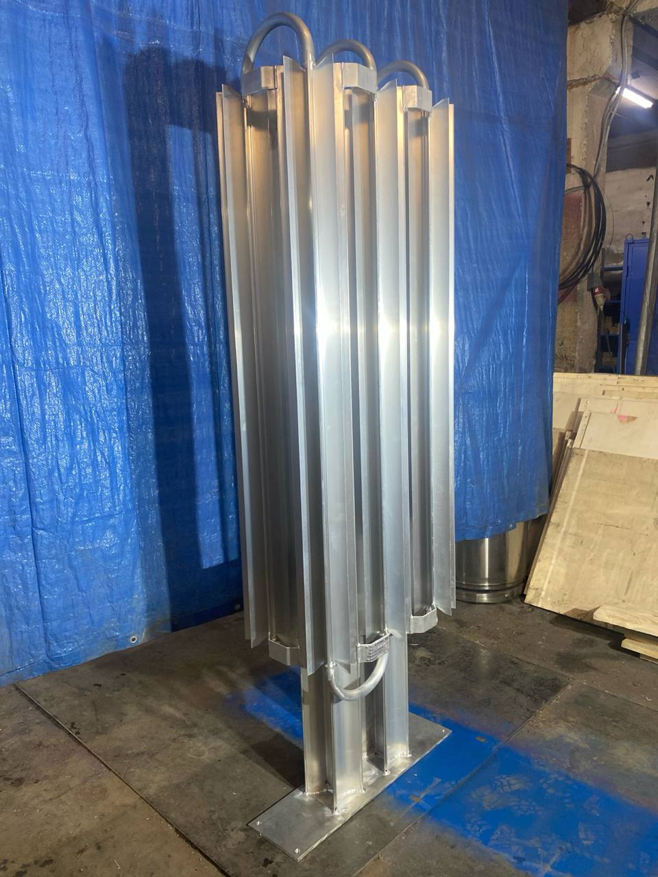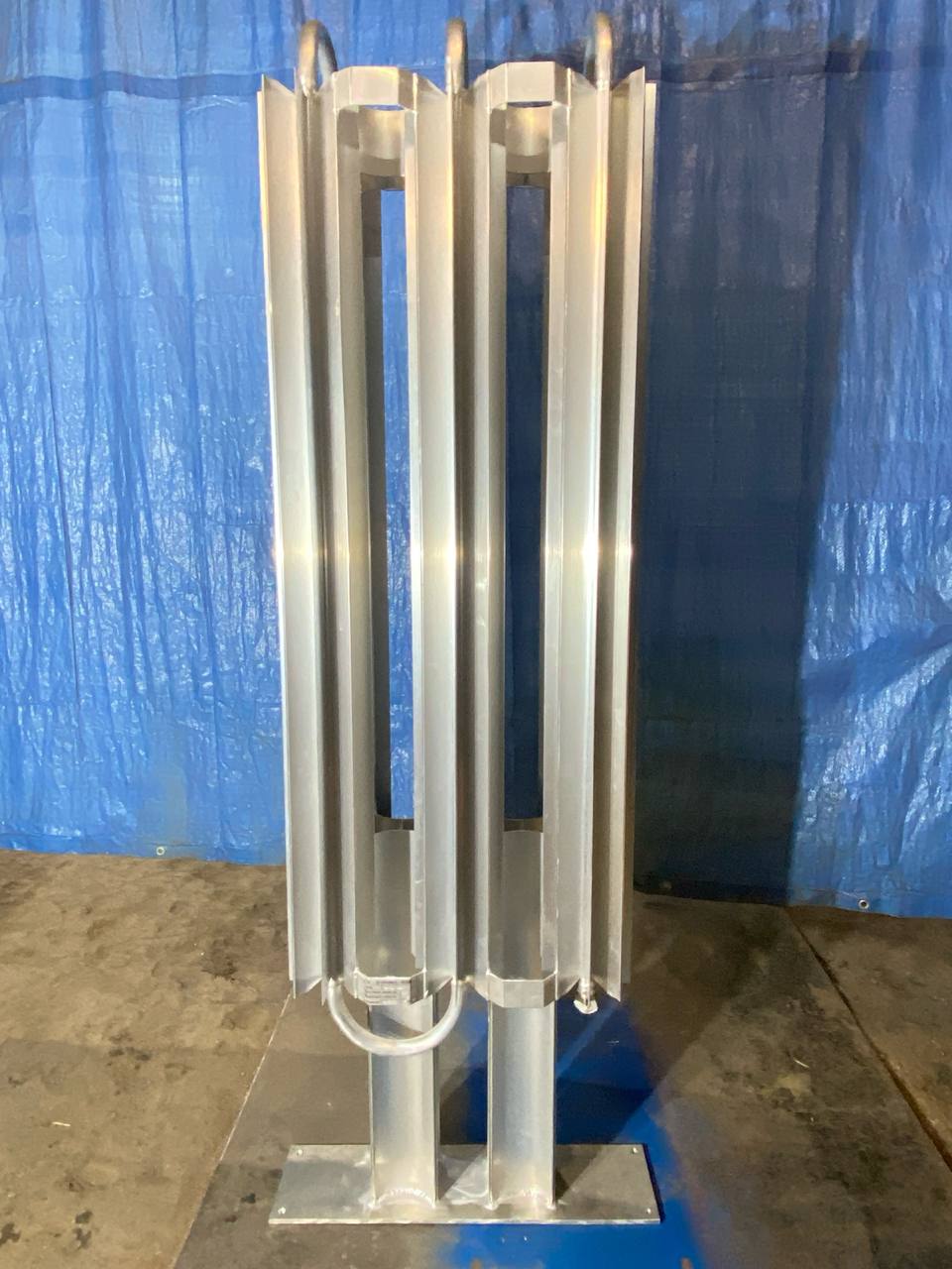 ООО "Крионика" использует плоский алюминиевый профиль для сборки небольших криогенных теплообменников, и объемный алюминиевый профиль в качестве опорной стойки. Типовой профиль позволяет однозначно с высокой точностью расположить оребренные трубы атмосферного испарителя друг относительно друга, что гарантирует отсутствие напряжений на сварных швах, точность расположения монтажных элементов и долгий жизненный цикл всего изделия. Покупателю следует уделить особое внимание на это, так как недобросовестные производители криогенных испарителей экономят на профиле и крепят трубы друг к другу через простой алюминиевый уголок, полосу, профильную трубу. Также для экономии используются рамные конструкции из черной стали. Все эти методы экономии приводят к большим отклонениям от параллельности труб, повышенным нагрузкам на сварочные швы и , в итоге, разгерметизации изделия.