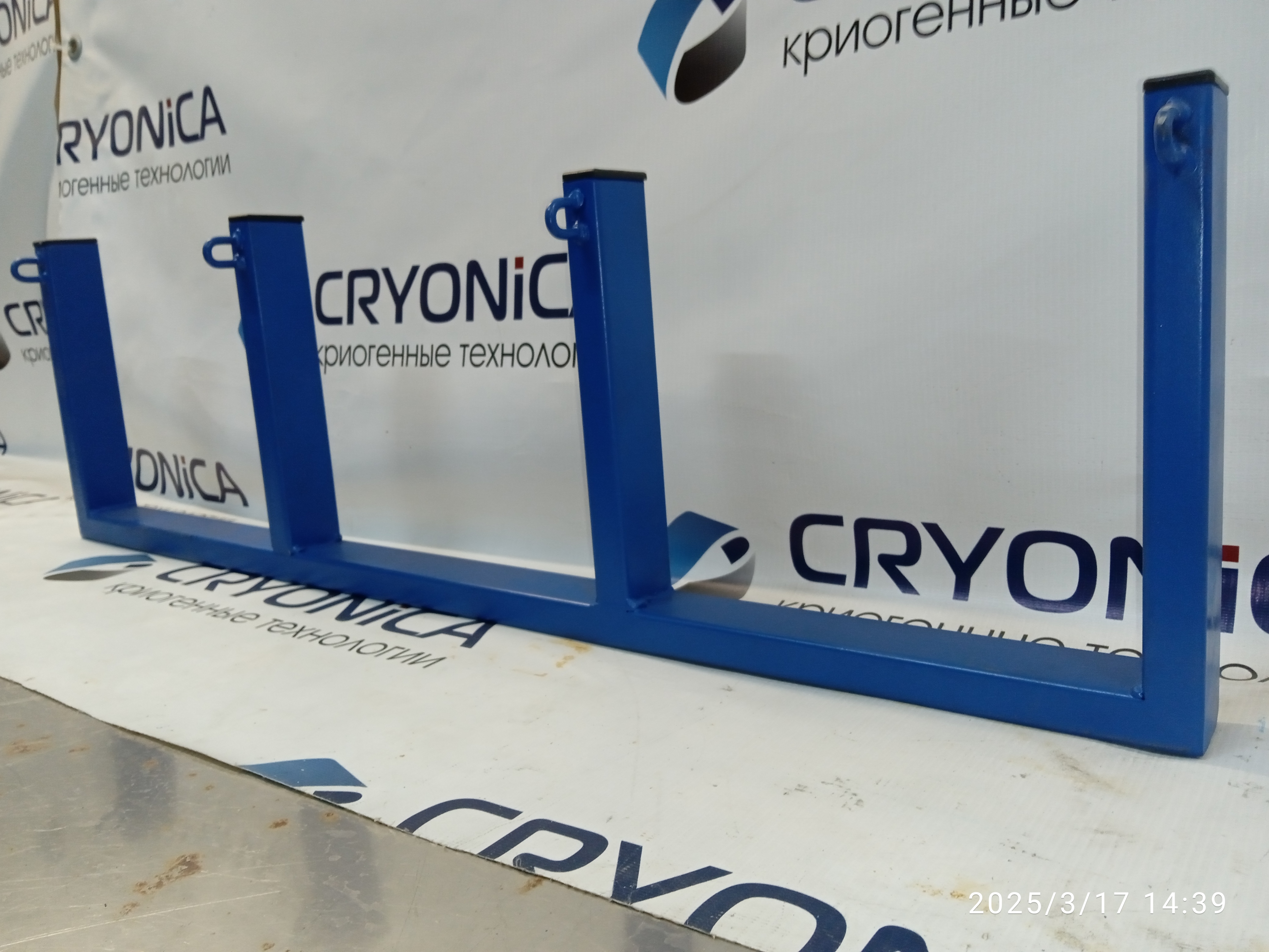 Ложемент для крепления к стене 3-х баллонов 40 и 50 литров для кислородных (азотных, аргоновых) рамп (аналог КЕ 6802 000, КЕ 6801 000, КГ 6859 000, КГ 6861 000), котрые предназначенны для непрерывного централизованного снабжения потребителей техническими газами (азот, аргон, кислород, воздух, углекислота, водород, гелий) из сорокалитровых баллонов ГОСТ 949-73 под давлением до 20 МПа (200 кгс/см2). Ложемент выполнен их трубы 40х20х2, используется прочная длиннозвенная цепь и пожарные карабины №6. Изделие окрашено в 2 слоя высококачественной краской, создающей износостойкое покрытие.