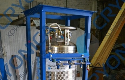 Транспортная рама снабжена нижними упорами для фиксации положения газификатора и исключения его перемещений относительно рамы. Также рама оборудуется парой поворотных и не поворотных колёс со стопорами для обеспечения комфортной транспортировки изделия по производственным площадям.
