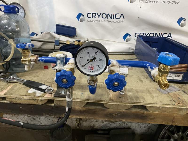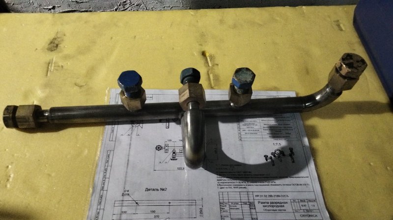 Наличие собственного склада комплектующих и слаженная работа отдела продаж, конструкторов и производства ООО "КРИОНИКА" позволили согласовать техническое решение с заказчиком в течение пяти рабочих дней и изготовить рампу по индивидуальным требованиям клиники "Толстый Лори" в максимально короткие сроки. Срок исполнения заказа составил всего 11 рабочих дней. Разрядная рампа РР 01-02-200 для кислорода выполнена из нержавеющей трубы, укомплектована манометром и рамповым клапаном российского производства, а также надежными запорными клапанами и газосбросом QJG150-4 производства Feilun – китайского производителя, зарекомендовавшего себя на российском рынке. ООО «Кроиника» более 10 лет эксклюзивно поставляет трубопроводную арматуру бренда FEILUN. Т.к. рамповый коллектор предназначен для работы с кислородом на производстве ООО "КРИОНИКА" выполнено обезжиривание, проведены гидравлические испытания на давление 300 кгс.см2, и пневматические испытания на давление 200 кгс/см2.