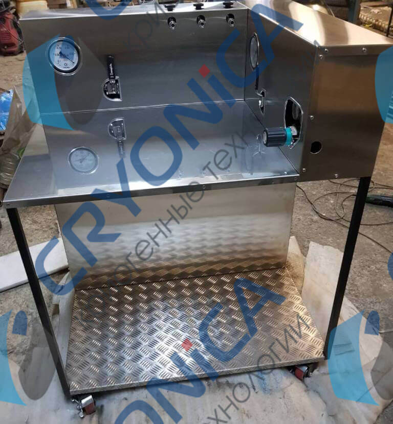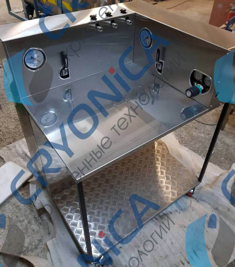 Перед нами стояла задача совместить рампу наполнительную с рабочей поверхностью, на которой можно было бы расположить оборудование, в которое закачивают рабочий газ, а также разместить в этой конструкции вакуумный насос.