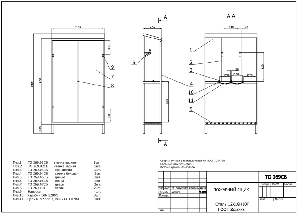 Согласно техническому заданию клиента, мы разработали чертежи для рампы (Рис.1) и шкафа (Рис.2).